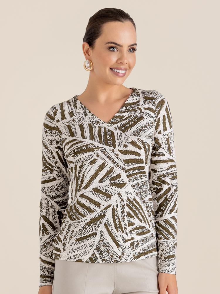Blusa "Movimento" Manga Longa Decote V Transpassado