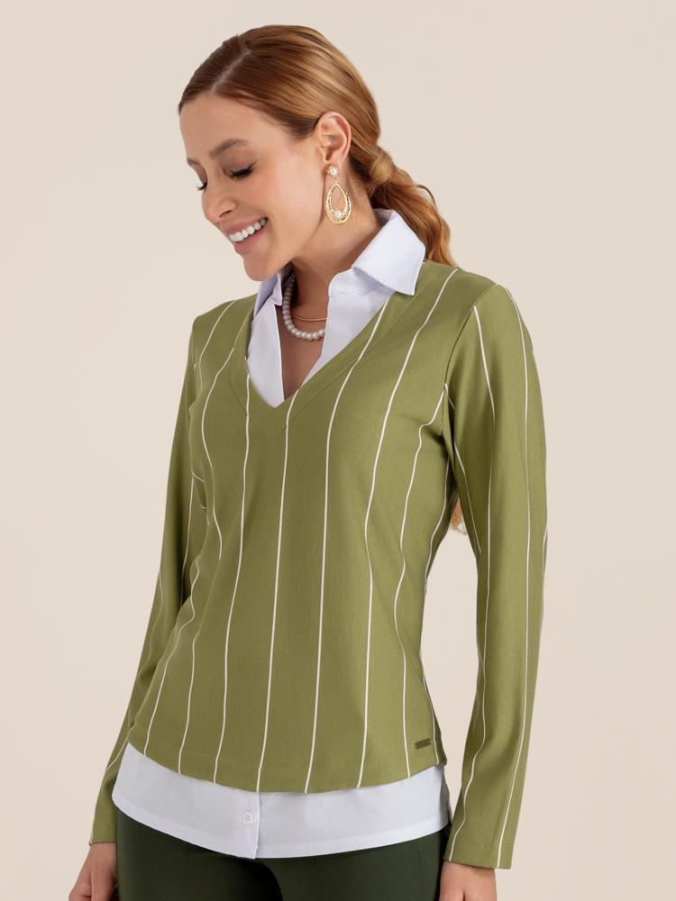 Suéter "Semente" Listrado Sobreposição Tricoline