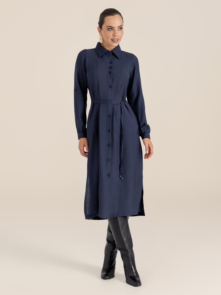 Vestido "Horizonte" Manga Longa Midi Chemise
